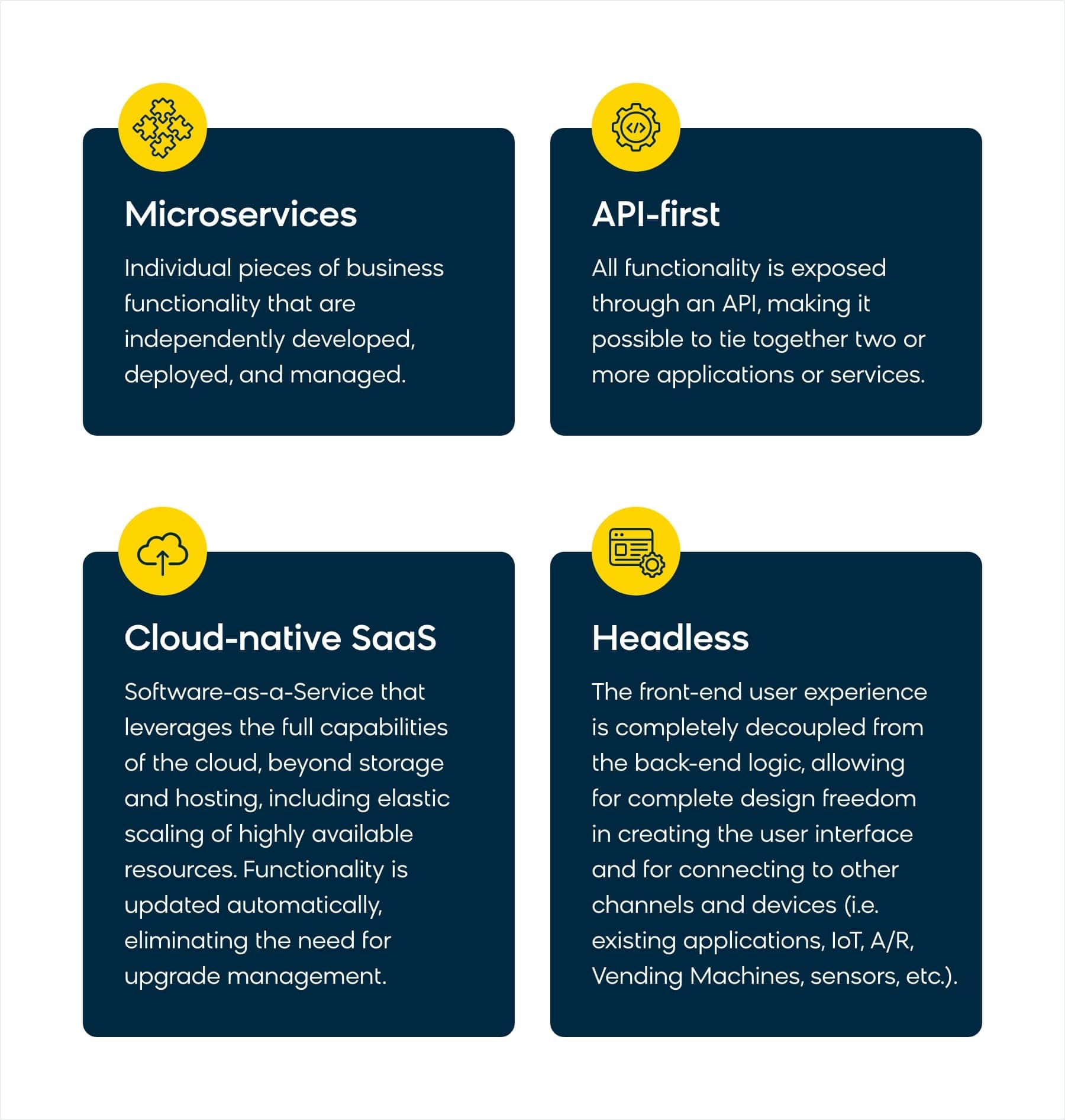- Modular architecture — Support more agile delivery, faster time to market, and better experiences across every customer touchpoint.