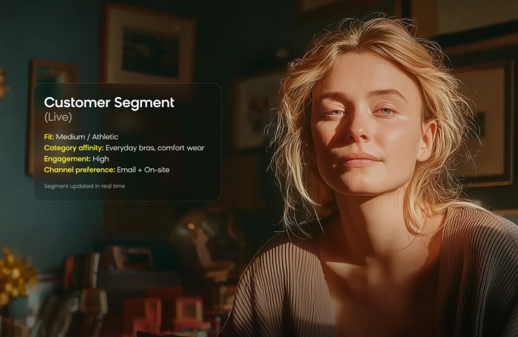 Each Thirdlove customer is segmented based on their recent purchase data, their personal results from Thirdlove’s on-site Fit Finder quiz, and their product and category preferences. Whenever a customer’s habits, browsing patterns, or size and fit preferences change, their segmentation is immediately refreshed.