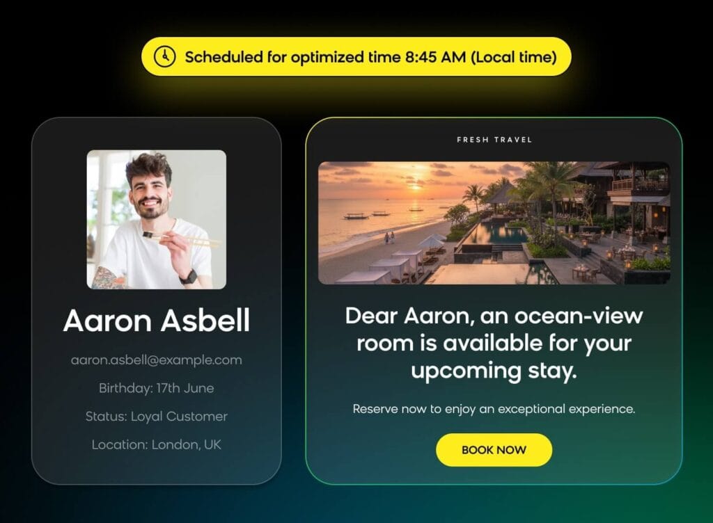 It can analyze real-time behavior, match the right offers to the right travelers, optimize the timing and channel of every message, and continuously learn from the results to improve future interactions.