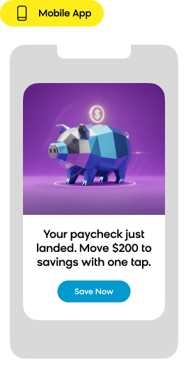 - Anticipate customer needs – Spot when someone is ready to open an account, apply for a loan, activate a credit card, or at risk of churning, then trigger the right message at the right time