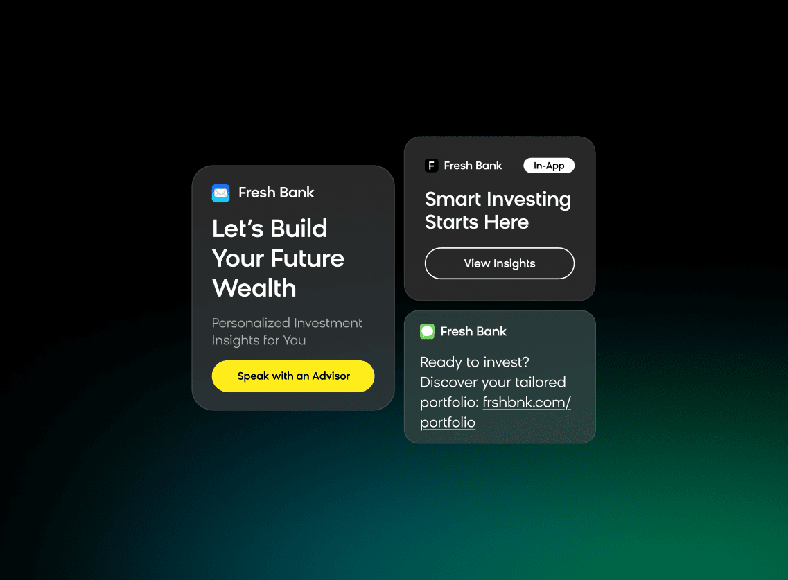 - Cross-sell journeys matching customers to wealth, investment, or insurance products