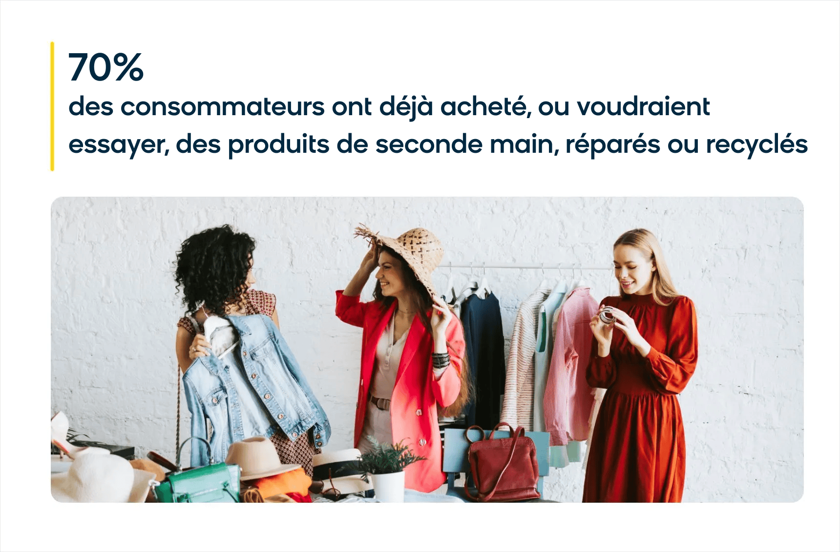 L’intérêt croissant pour l’économie circulaire (qui offre des alternatives à l’achat de produits, comme la location et la seconde main) signifie que les pratiques durables sont devenues de plus en plus importantes pour les consommateurs. Selon une enquête de la National Retail Federation (NRF), 70 % des personnes interrogées ont essayé ou aimeraient essayer d’acheter des produits d’occasion, réparés ou recyclés. Un ecommerce qui intègre la durabilité à sa stratégie peut donc se différencier de la concurrence et attirer des clients qui partagent les mêmes valeurs.